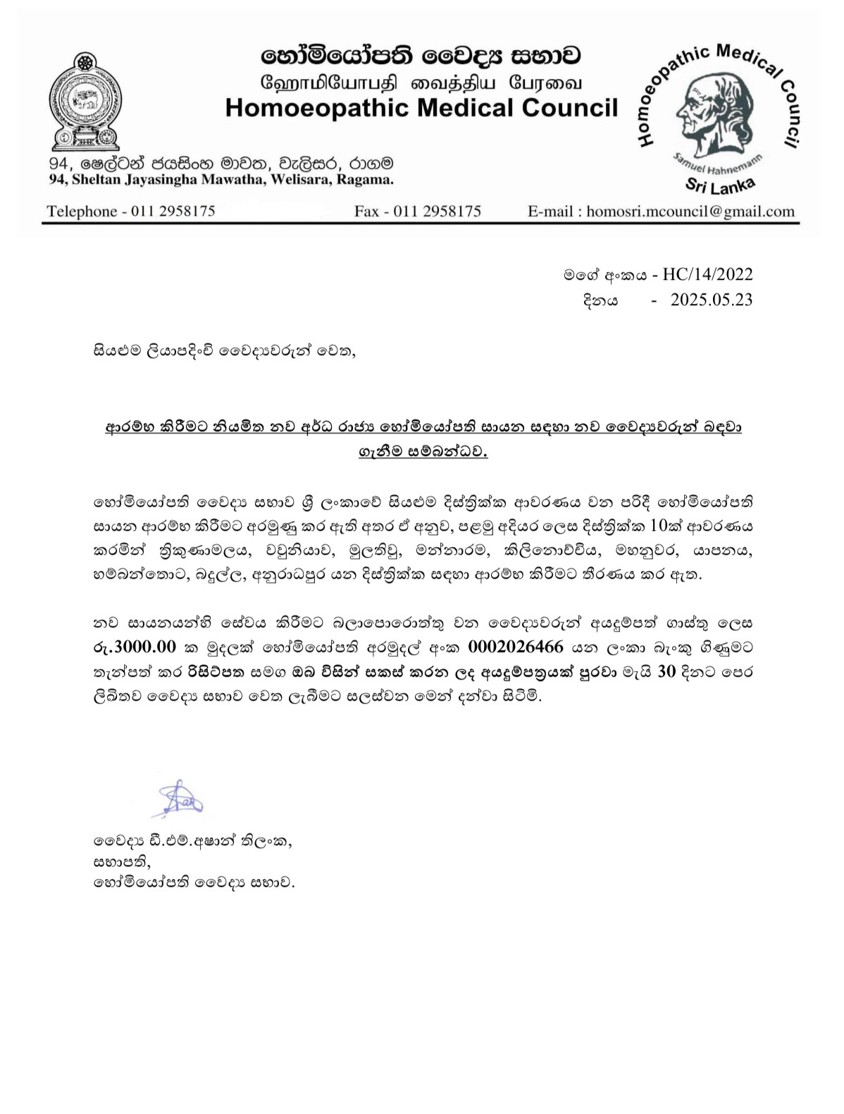 Dr. Ashan Thilanka Dunukara has been reappointed as Chairman of the Sri Lankan Homeopathic Medical Council for a second consecutive term, marking a continuation of his leadership in the regulation and promotion of homeopathic medicine in the country. Dr. Dunukara's reappointment underscores his proven leadership and dedication to advancing the standards of healthcare within the field of homeopathy. With his extensive experience and expertise, he is expected to further enhance the council's initiatives aimed at ensuring high-quality care and professional conduct among homeopathic practitioners. During his previous tenure, Dr. Dunukara has been instrumental in driving initiatives to integrate homeopathic medicine into Sri Lanka's healthcare framework, promoting education, and public awareness of alternative therapeutic options. His continued leadership is poised to steer the Sri Lankan Homeopathic Medical Council towards greater achievements, reinforcing its role in providing accessible and effective healthcare solutions to the population. Dr. Dunukara's reappointment reaffirms the council's commitment to maintaining excellence and innovation in homeopathic healthcare practices, promising continued advancements under his guidance.